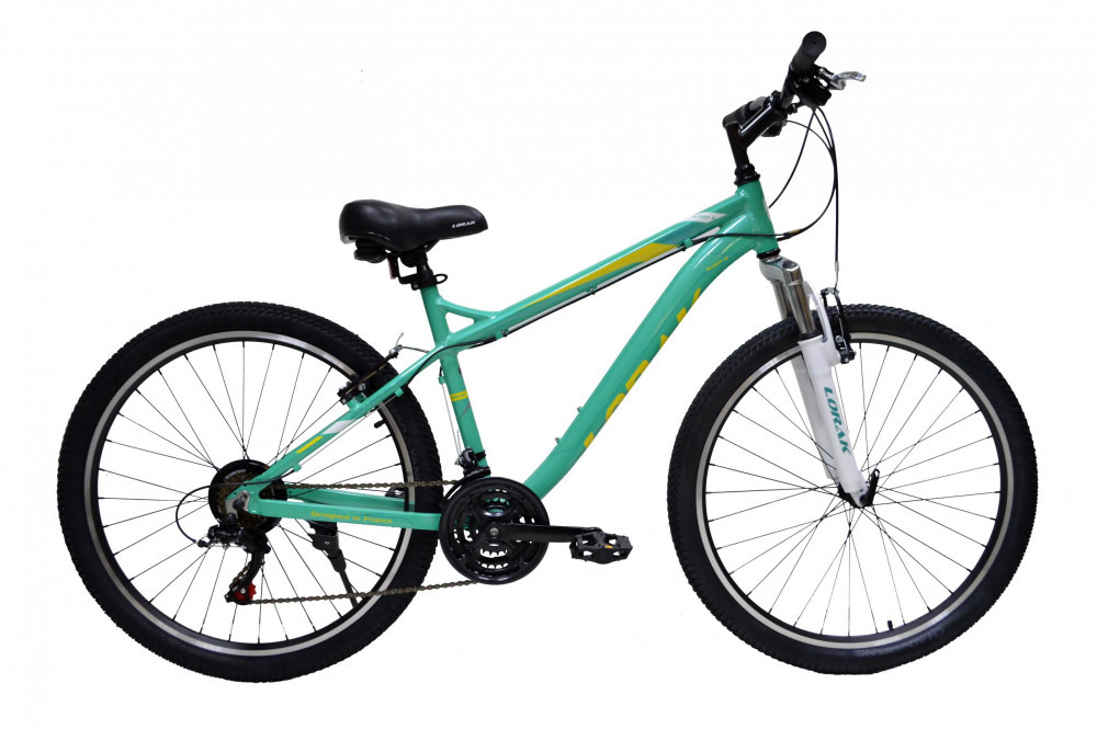 Lorak Glory 6 - имеет облегченную алюминиевую раму. Простой в обслуживании велосипед, 18 скоростей, ободные тормоза типа V-Brake. Яркий дизайн, покрышки с белой полосой, широкое сиденье. Очень удобный в использовании велосипед с надежными ручками переключения скоростей от Shimano.