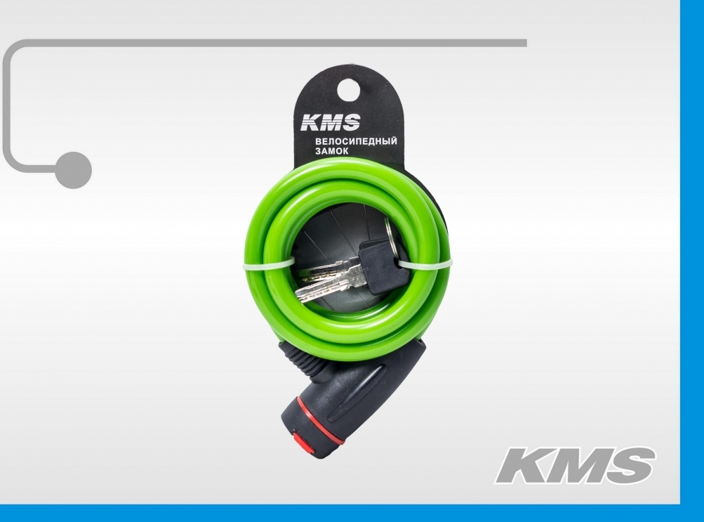 Велозамок "KMS", трос Ø 10х1200, с пылезащитным замком, 6 цветов.