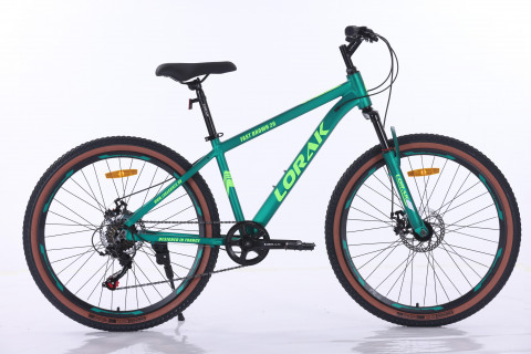 Цвет Матовый Зелёный Материал рамы алюминий Тип тормозов дисковый механический Диаметр колес 26 Размер рамы 15" Вилка амортизационная с регулировкой ход 60 мм пружинная Количество скоростей 7 Передний переключатель - Задний переключатель Shimano TZ 500 Передний тормоз дисковый mech. disc 160 механический Задний тормоз дисковый mech. disc 160 механический Манетки Shimano ST-EF 500 рычажковый Шатуны HDL 1ск. 32 T Каретка картридж Задние звезды ATA 7sp 14-28T Втулки steel на промах Покрышки 26*2.125 с коричневой полосой Обода алюминий двойной LORAK Цепь KMC C030 Руль Lorak 580W*2.2T Вынос резьбовой Подседельный штырь Zoom 27.2*300MM Рулевая колонка резьбовая Седло Lorak Junior Педали пластик Вес 14,9 кг